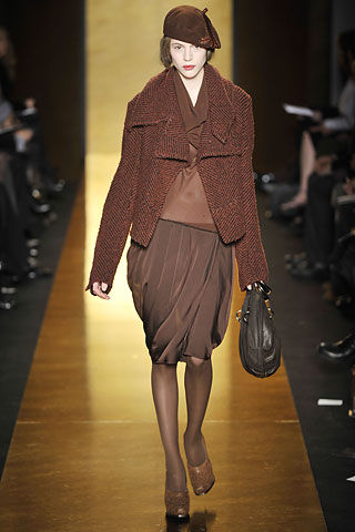 08春夏纽约时装周,MissSixty将复古元素发挥得十分到位。这一季设计的灵感来自1966年的电影《TheChelseaGirls》,设计师WichyHassan将夸张的廓形与图案结合,并在此季出奇地强调配饰,不仅有60年代复古的味道,也融入现今摩登时髦的元素。粉色复古系列、亮黄与咖啡色系列、蓝灰色系列是MissSixty的专用色延续,银色系列的展现为其引入了新的流行气息,超现代的设计。此外,复古的图案,摩登的配件——皮带、项链、眼镜、帽子和包包都在其中增色不少。
