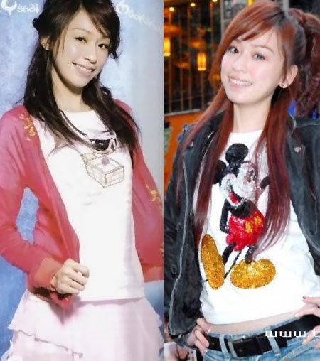 郑秀文的这两款搭配对于童心未泯的白领MM很实用呢!一方面不好意思穿着幼稚的卡通T恤“招摇”,一方面又不满意日常通勤装的死板,干脆来个mix&match,在外衣下面配上可爱的卡通T恤,既不会显得太幼稚,又能在正式的穿着中透出休闲味道。