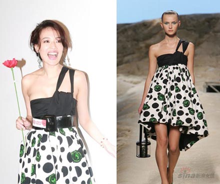 编者按:我们看T台模特,自恨没那么多银子,照搬一套套美服。有钱的女明星们,或者自掏腰包,或者获得品牌赞助,穿上那些闪耀T台的华服。可是效果如何呢?让我们小小评说一下。不过,事实证明,照搬T台不一定100%成功,懂得自己的缺点,扬长避短,比有千金万银买大牌衣重要。